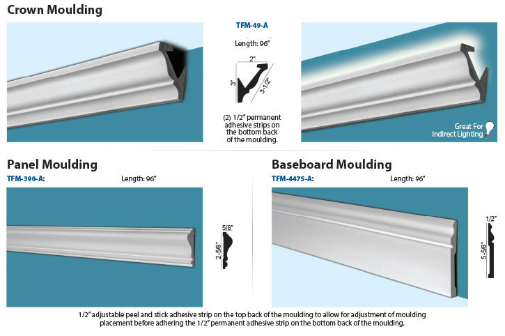 High impact peel and stick Mouldigns with Pre-Mitered inside & outside corners